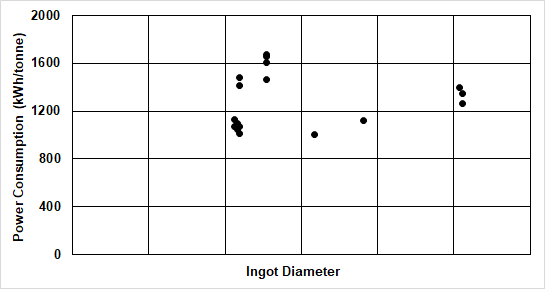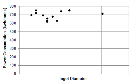In all cases, the calculated specific power consumption is in the range of 600-800 kWh/tonne which is in agreement with generally expected values for VAR.