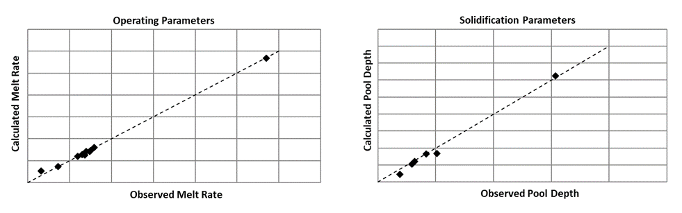 Comparison of Calculated and Observed Operating and Solidification Parameters